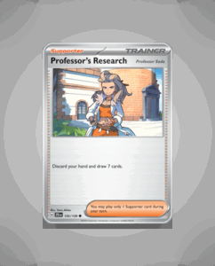 Professor’s Research is a common Trainer card from the Journey Together set. It holds the number 155 in the collection. This card features straightforward gameplay utility without any attacks or abilities.