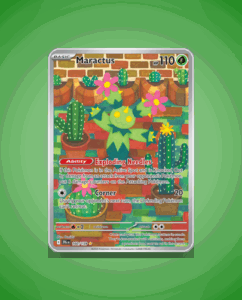 Maractus from the Journey Together set is a striking Illustration Rare card numbered 160. It boasts 110 HP and features the unique ability Exploding Needles. Its attack, Corner, adds tactical depth to gameplay. This card’s vivid design makes it a notable addition for collectors.
