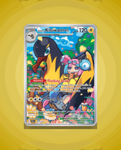 Iono’s Kilowattrel from the Journey Together set is a striking Illustration Rare card numbered 163. It boasts 120 HP and features the ability Flashing Draw, enhancing gameplay strategy. Its attack, Mach Bolt, delivers a dynamic edge to battles. This card offers a vivid addition to…