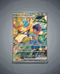 Hop’s Zacian ex from the Journey Together set is an Ultra Rare card boasting 230 HP. This striking card features the powerful attack Brave Slash, making it a notable addition for collectors and players alike. Its vibrant design captures the dynamic energy of Zacian in…