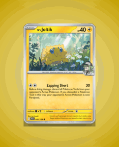 N’s Joltik from the Journey Together set is a Common card numbered 49. This lively Pokémon features 40 HP and a unique attack called Zapping Short. Its compact design captures the essence of this energetic character.