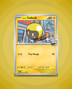 Iono’s Tadbulb is a Common card from the Journey Together set, numbered 52. This lively Pokémon has 60 HP and features the attack Tiny Charge. Its straightforward design makes it a charming addition to any collection.