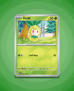 Petilil from the Journey Together set is a Common card numbered 6 with 50 HP. This vibrant card features the attack Leaf Step, showcasing Petilil’s connection to nature. Its modest stats make it a straightforward addition for collectors.