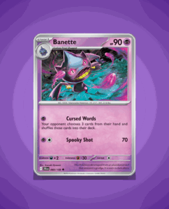 Banette from the Journey Together set is an uncommon Pokémon card numbered 60. It has 90 HP and features the attack Spooky Shot. This card offers a straightforward yet intriguing addition to any collection.