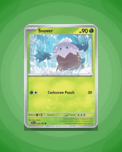 Snover, the Snow Shovel Pokémon, debuts in the Paldea Evolved set with an impressive Common rarity and 90 HP. Its Corkscrew Punch attack adds a snowy twist to combat. Despite its humble beginnings, this frosty Pokémon is sure to be a valuable addition to any…