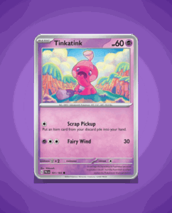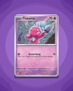 In the captivating world of Paldea Evolved, prepare to encounter Tinkatink, a delightful Common Pokémon with an enchanting presence. As number 101, this Fairy-type Pokémon boasts a resilient HP stat of 60, and its signature attack, Fairy Wind, is sure to leave opponents in a…