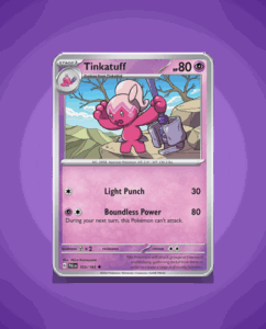 In the vibrant world of Paldea Evolved, the uncommon Tinkatuff (#103) stands out with its distinctive, fluffy appearance. Boasting 80 HP, this captivating Pokémon is equipped with the formidable attack, Boundless Power. Despite no recorded ability as of yet, collectors eagerly anticipate the unique strategies…