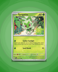 Sprigatito, the Grass-type Pokémon from the Paldea Evolved set, makes its debut as number 12 in this exciting collection. As a Common card, Sprigatito boasts a base HP of 60 and the powerful attack Seed Bomb. Despite its common rarity, collectors will find Sprigatito’s vibrant…