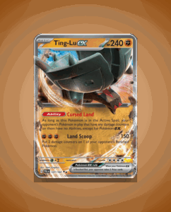 In the expansive Paldea Evolved set, the Double Rare Ting-Lu ex (#127) stands tall with an impressive HP of 240. This formidable Pokémon’s unique ability, Cursed Land, adds a layer of strategy to its battles. The attack, Land Scoop, is a powerful move that showcases…