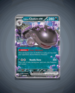 In the expansive Paldea Evolved set, the Double Rare Paldean Clodsire ex stands tall with an impressive HP of 280. Its unique ability, Toxic Wetland, adds a layer of strategic depth to its formidable presence. The attack Needle Bone is poised to deliver a piercing…