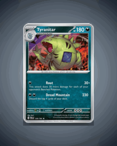 In the expansive world of Paldea Evolved, Tyranitar stands tall as one of its most formidable Rare Pokémon. With an impressive HP of 180, this fearsome creature is a force to be reckoned with. Its signature attack, Dread Mountain, strikes terror into opponents, making it…