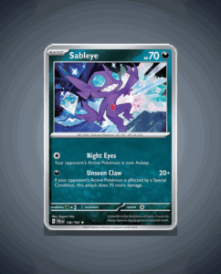 In the intriguing world of Paldea Evolved, Sableye, the enigmatic Rare Pokémon with number 136, emerges as a captivating addition to any collector’s arsenal. With an impressive HP of 70, this Ghost-type Pokémon is a formidable force, ready to unleash its Unseen Claw attack upon…