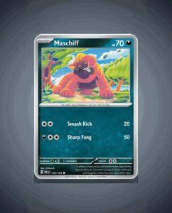 In the vibrant world of Paldea Evolved, the common Pokémon Maschiff (#141) is a stealthy force to be reckoned with. With 60 HP and the Ambush attack, this cunning creature prefers to catch opponents off guard, making it an intriguing addition to any collector’s arsenal…