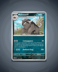 In the vibrant world of Paldea Evolved, Uncommon Pokémon enthusiasts will find Mabosstiff, a Darkness-type powerhouse with 140 HP. This canine companion wields Darkness Fang as its primary attack, making it an intriguing addition to any collector’s arsenal. Despite the absence of noted abilities, Mabosstiff’s…