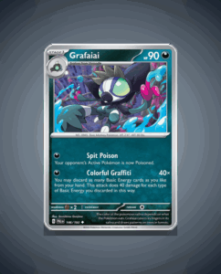Grafaiai, the vibrant Uncommon Pokémon from the Paldea Evolved set (#146), boasts a striking HP of 90. Its standout attack, Colorful Graffiti, is sure to catch any collector’s eye. Despite the lack of information regarding its release date or ability, Grafaiai remains an intriguing addition…