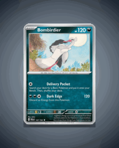 In the vibrant world of Paldea Evolved, the Uncommon Pokémon, Bombirdier (#147), takes flight with an impressive HP stat of 120. This avian marvel is known for its dark-edged attacks, making it a force to be reckoned with on the battlefield. Despite not having an…