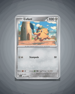 In the vibrant world of Paldea Evolved, Cufant, the Common Pokémon numbered 149, emerges as a sturdy addition to any collector’s roster. With an impressive base HP of 100, this ground-type Pokémon is known for its powerful Stampede attack, making it a formidable force on…