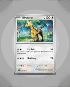 In the vibrant world of Paldea Evolved, the towering Girafarig (#154) graces common collections with its unique charm. This Pokémon boasts 100 HP and an impressive attack move known as Headbang, making it a formidable addition to any deck. Despite its elusive nature, Girafarig is…