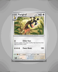 In the captivating world of Paldea Evolved, the Uncommon Pokémon Farigiraf (#155) stands tall with an impressive HP stat of 140. This elongated, graceful creature is known for its potent Power Beam attack, making it a formidable force in any battle. Despite not having an…