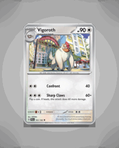 In the vibrant world of Paldea Evolved, Uncommon Pokémon Vigoroth (#161) stands tall with an impressive 90 HP. This energetic creature is distinguished by its unique Sharp Claws attack, making it a formidable force in battle. Despite not having an explicitly stated ability, the intrigue…