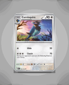 In the expansive Paldea Evolved set, the Uncommon Corvisquire (#165) emerges with an impressive 90 HP, ready to take flight. Its primary attack, Clutch, showcases its tenacity and determination in battle. Despite no recorded ability as of yet, this Pokémon continues to intrigue collectors and…