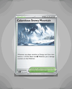 In the expansive Paldea Evolved set, the Calamitous Snowy Mountain (#174) stands out as an uncommon find. This icy terrain Pokémon card boasts a striking design that captures the raw power of snow-covered peaks. Despite its uncommon rarity, collectors will appreciate its unique addition to…