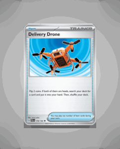 In the vibrant world of Paldea Evolved, the Uncommon Delivery Drone (#178) soars above the competition. This sleek drone, a staple of the collection, boasts no specific HP but is renowned for its swift and reliable delivery services. Despite lacking an ability, it’s designed to…