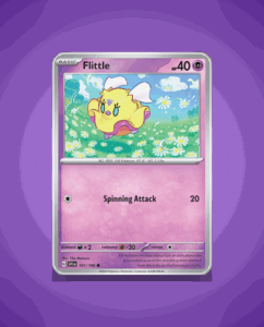In the vibrant world of Scarlet Violet, the Common Pokémon Flittle (#101) makes its debut. With 40 HP, this tiny bird-like Pokémon is a force to be reckoned with, as it unleashes its Spinning Attack on opponents. Despite being common, Flittle’s energetic presence and unique…