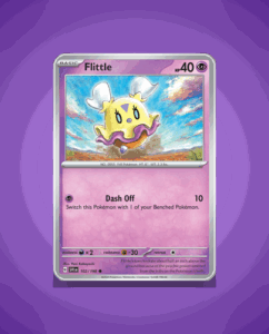In the vibrant world of Scarlet Violet, prepare to encounter Flittle, a diminutive yet spirited Common Pokémon (#102). With a quickness that belies its small stature, Flittle’s Dash Off attack is a swift and agile maneuver, making it an exciting addition to any collector’s deck…