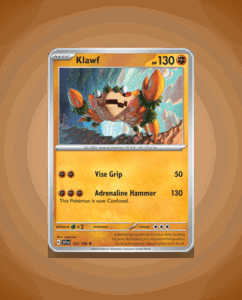 In the vibrant world of Scarlet Violet, collectors will be thrilled to encounter Klawf, a Rare Pokémon making its debut as number 122. This formidable creature boasts an impressive Health Point total of 130, preparing it for intense battles ahead. Its signature attack, Adrenaline Hammer…