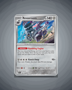 In the vibrant world of Scarlet Violet, prepare to meet Revavroom (#142), a rare Pokémon that graces the collection with a striking 140 HP. This captivating creature’s unique ability, Rumbling Engine, adds extra excitement to each battle. And when it comes to attacks, Revavroom’s powerful…