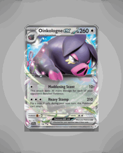In the vibrant world of Scarlet Violet, a formidable Pokémon makes its debut: Oinkologne ex, the Double Rare titan with an impressive HP of 260. Known for its powerful Heavy Stomp attack, this colossal Porcino evolution is sure to leave a lasting impression on any…