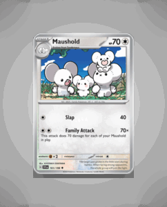 In the vibrant world of Scarlet Violet, a new Uncommon addition takes center stage: Maushold, the 161st card in the set. With a robust HP of 70, this Pokémon is ready to face off against opponents with its unique Family Attack move. Whether you’re a…