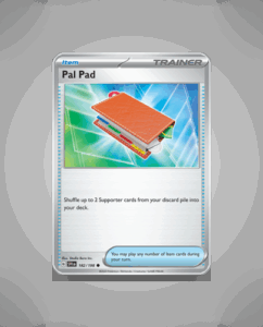 Dive into the world of Scarlet Violet with the versatile Pal Pad, an essential Item card that shuffles Supporter cards back into your deck and allows for multiple Item card plays in a single turn.