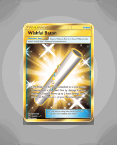 Wishful Baton is a Rare Secret card from the vibrant Crimson Invasion set. As card number 121, it stands out with its unique design and rarity. This collectible piece adds a distinctive touch to any Pokémon TCG collection.