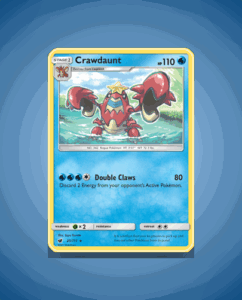 Crawdaunt from the Crimson Invasion set is a rare Pokémon card numbered 25. It features 110 HP and a striking attack called Double Claws. This card offers a solid presence in any collection with its vivid design and reliable stats.