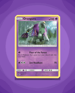 Oranguru from the Crimson Invasion set is a Rare Pokémon card numbered 48. It has 110 HP and features the attack Zen Headbutt. This card offers a solid presence for collectors seeking versatile options.