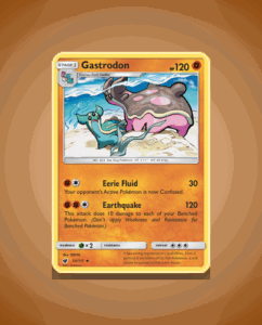 Gastrodon from the Crimson Invasion set is an Uncommon card numbered 54. It boasts a sturdy 120 HP and features the powerful Earthquake attack. This card offers solid durability and a straightforward offensive option for collectors and players alike.
