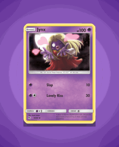 Jynx from the Hidden Fates set is an uncommon card numbered 30. It has 100 HP and features the attack Lovely Kiss. This card offers a charming addition to any collection.