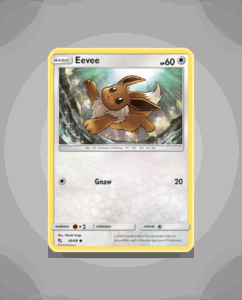 Eevee from the Hidden Fates set is a common card numbered 49 with 60 HP. This charming Pokémon features the straightforward attack Gnaw. Its simple design makes it a recognizable addition to any collection.