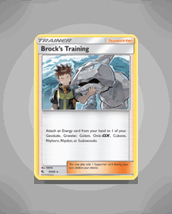 Brock’s Training is a Rare Holo card from the Hidden Fates set, numbered 55. This collectible features the iconic character Brock, capturing his determined spirit. Its striking holo finish adds a vibrant touch to any collection.