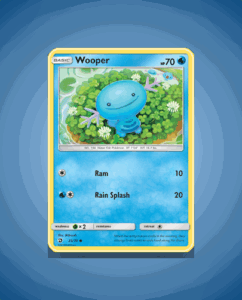 Wooper from the Dragon Majesty set is a Common card numbered 25. This lively Pokémon has 70 HP and features the attack Rain Splash. Its straightforward design makes it a charming addition to any collection.