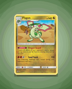 Flygon from the Dragon Majesty set is an uncommon card with 140 HP. It features the ability Dragon Guard and the attack Sand Tomb. This card is numbered 39 in the set.