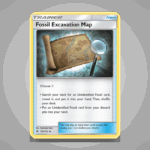 Fossil Excavation Map is an Uncommon Trainer card from the Forbidden Light set. Numbered 107, this card features artwork that captures the thrill of uncovering ancient Pokémon fossils. Its design adds a thematic touch to any deck focused on Fossil Pokémon.