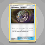 Mysterious Treasure is an uncommon card from the Forbidden Light set, numbered 113a. Its intriguing name hints at hidden value within the collection. This card adds a unique element to any deck or display.