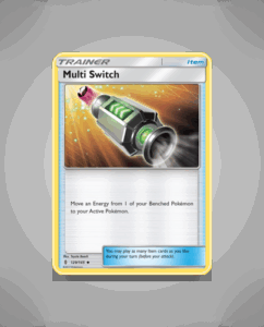 Multi Switch is an uncommon Trainer card from the Guardians Rising set, numbered 129. Its design features a dynamic, vibrant illustration that captures the essence of strategic gameplay. As a versatile card, Multi Switch offers players unique tactical options during battles.