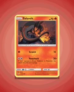 Salandit is a Common Pokémon card from the Guardians Rising set, numbered 15. It has 70 HP and features the attack Venoshock. This card offers a straightforward addition to any collection.