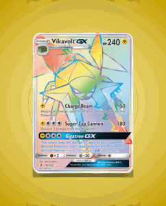 Vikavolt-GX from the Guardians Rising set is a Rare Rainbow card numbered 152. It boasts a striking 240 HP, making it a resilient choice in battle. Its notable attack, Super Zap Cannon, highlights its electric prowess. This card stands out with its vivid design and…