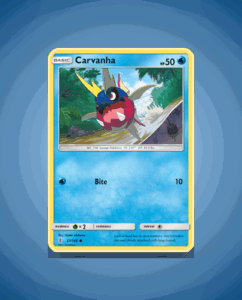 Carvanha from the Guardians Rising set is a common card numbered 27. This Pokémon features a modest 50 HP and a straightforward attack called Bite. Its simple design makes it an accessible addition for collectors focusing on this set.