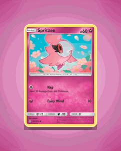 Spritzee is a Common Pokémon card from the Unbroken Bonds set, numbered 141. It has a modest 60 HP and features the attack Fairy Wind. This card offers a straightforward addition to any collection.